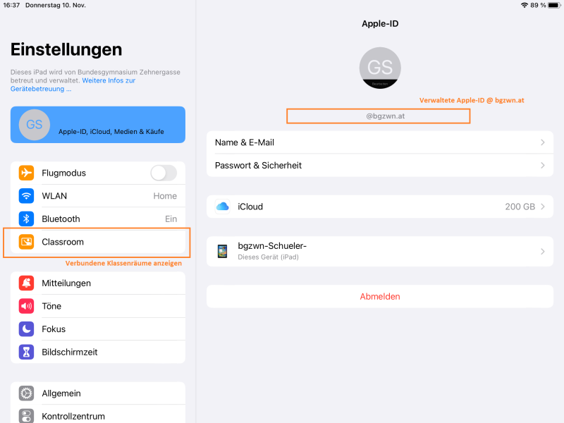 Die Apple-ID der Schule ist mit der Schul-E-Mail-Adresse ident!
