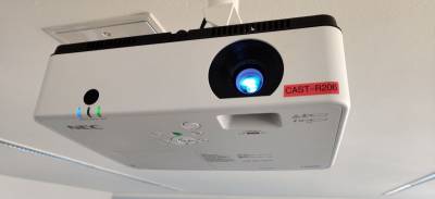 Die Screen-Mirroring-Dongles sind ausschließlich über das verkabelte LAN-Schulnetz sowie über das WLAN bgz.Lehrer erreichbar. Alle kompatiblen Deckenprojektoren, welche auf der Vorderseite ein rotes Etikett mit schwarzer Schrift „CAST-RXXX“ aufweisen, sind mit deinem LAN-Mirror-Dongle ausgestattet. Die Bezeichnung RXXX kennzeichnet den Namen des Projektors (Raumnummer!). Der Dongle muss nicht extra eingeschaltet oder ausgeschaltet werden. Er bezieht seinen Strom durch den eingeschalteten Projektor.